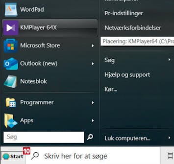 Lad os til sidst se en startmenu i aktion. Menuen åbner du som altid med et venstreklik på startknappen 12.