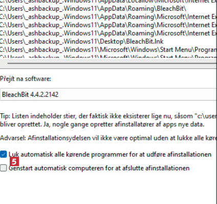 Fjern fluebenet ved Genstart automatisk computeren for at afslutte afinstallationen 5, så pc’en ikke lukker, mens du er i gang med noget andet arbejde.