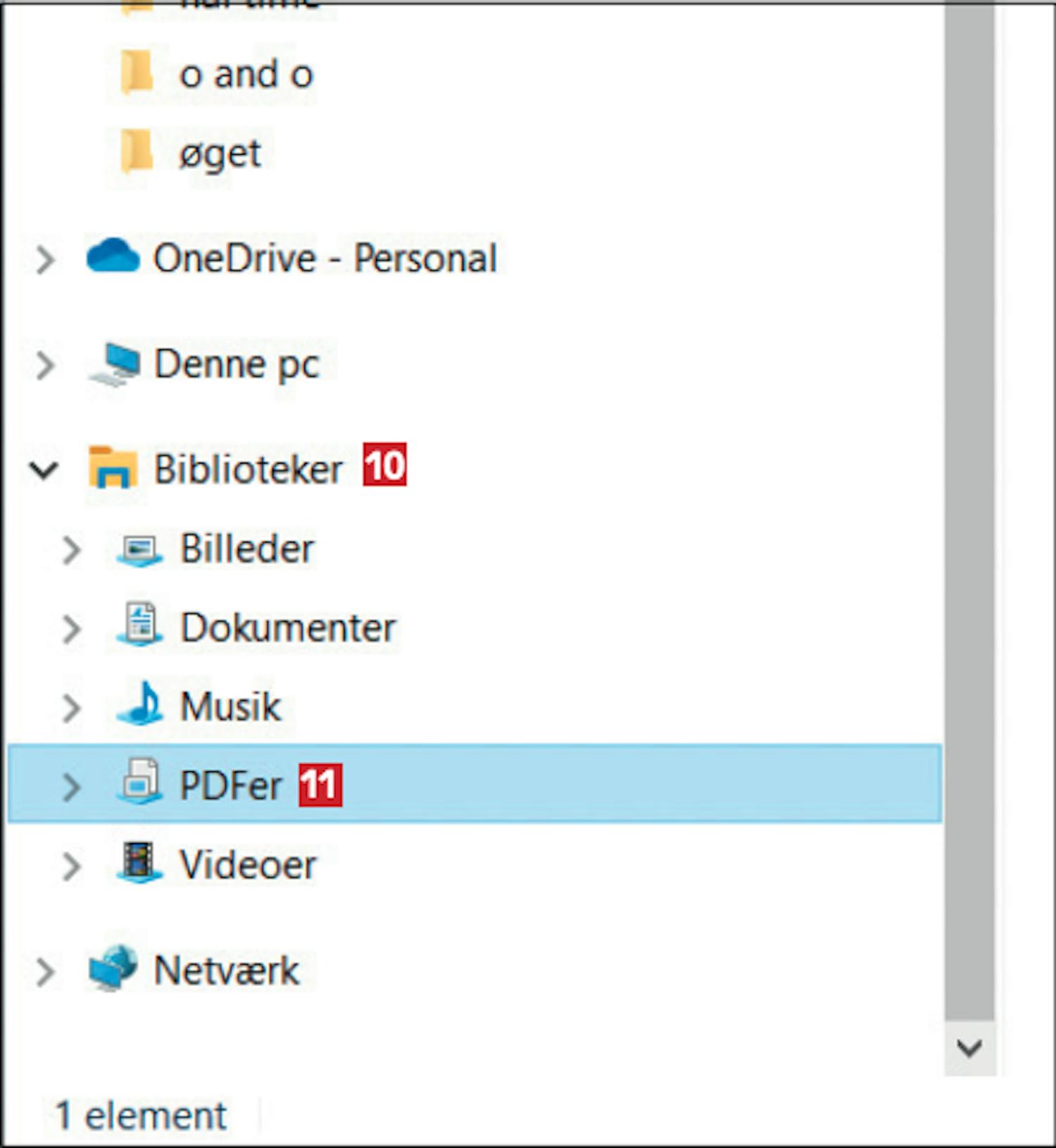 Fremover har du adgang til biblioteker 10 – inklusive PDF’er 11 – i panelet til venstre.