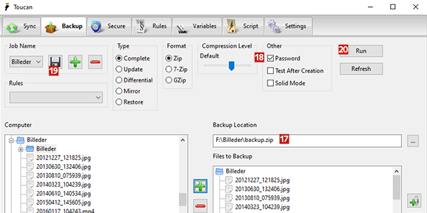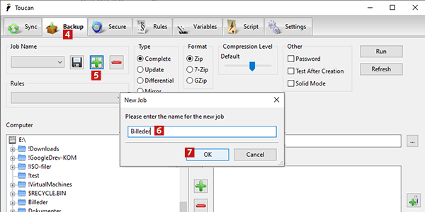 Her viser vi, hvordan du opretter din første backup i Toucan – en såkaldt opgave. Du kan oprette flere backup-opgaver i Toucan. Så kan du fx oprette en opgave til at tage backup af dine billeder og en til dine dokumenter.