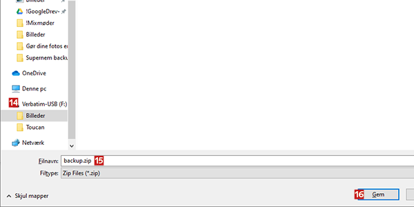 Første gang du gemmer en sikkerhedskopi, kopieres alle filer til din USB-nøgle. Men når du fremover bruger Toucan, gemmes kun de filer, der er kommet til på pc’en, siden du sidst tog en backup.