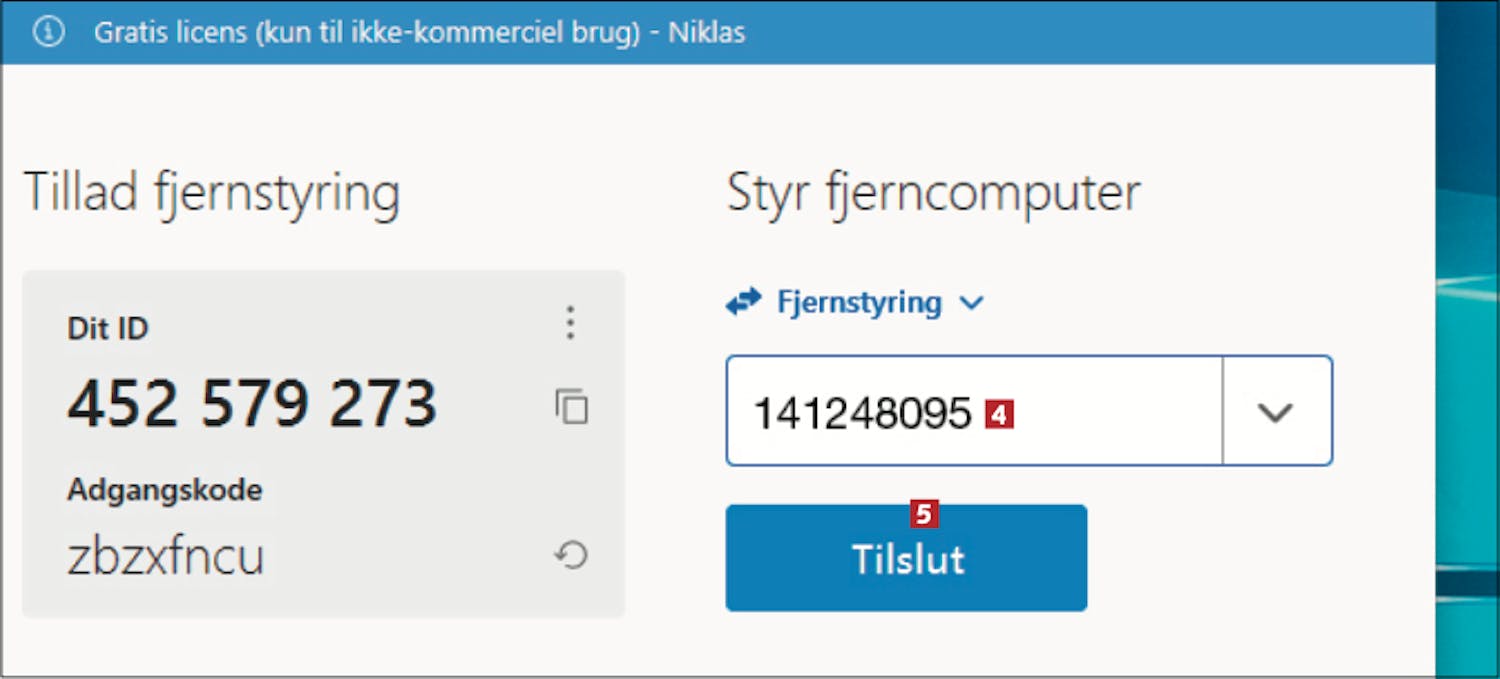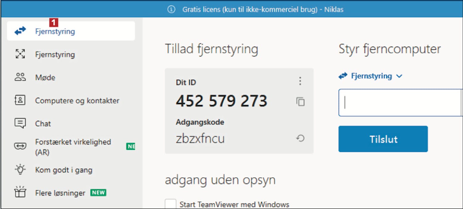 Det kræver end ikke en brugerregistrering at arbejde med TeamViewer. Du skal blot åbne programmet, og så er du i gang.