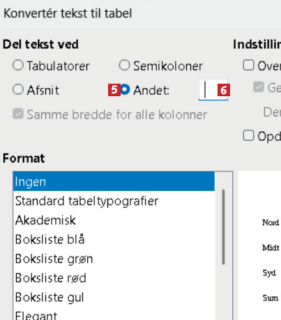 Sæt markering ved Andet 5. Sæt markøren i feltet 6 , og tryk på mellemrumstasten én gang. Klik på OK nederst.