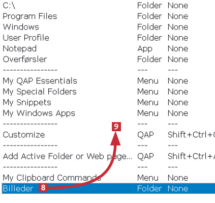 På den måde undgår du, at den færdige genvejsmenu bliver for lang og uoverskuelig.