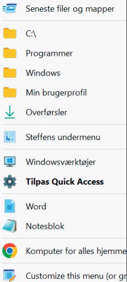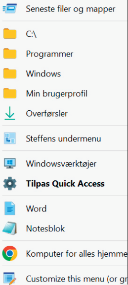 Når du først har brugt lidt tid på at sætte dine genveje optimalt op i Quick Access’ menu, vil du undre dig over, hvordan du nogensinde har klaret dig uden. Du vil nok også opdage, at du ikke længere har brug for at besøge Windows’ halvtræge startmenu.