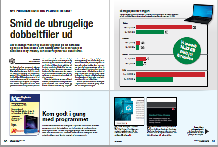 I årenes løb akkumuleres en masse dubletter af de filer, du har på din computer. Det kan fx ske, hvis du flytter filer fra én mappe til en anden, men glemmer at slette filerne i den oprindelige mappe; hvis du henter en fil fra nettet, men kommer til at klikke på den to gange, eller simpelthen fordi, et program bliver opdateret, og ikke får ryddet ordentligt op efter sig. Med Auslogics Duplicate File Finder er det lettere end nogensinde før, at finde og slette de overflødige dobbeltfiler, der bare ligger og optager plads på din harddisk. Se, hvor meget plads, du kan frigøre!