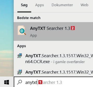Programmet virker først, når alle filer på harddisken er indekseret. Indeksering betyder, at programmet skaber et register over indholdet i filerne. Hvis en fil ikke dukker op i søgningen, kan det skyldes, at den ikke er indekseret endnu. Se her, hvordan du tjekker, om pc’ens indhold er færdigindekseret.