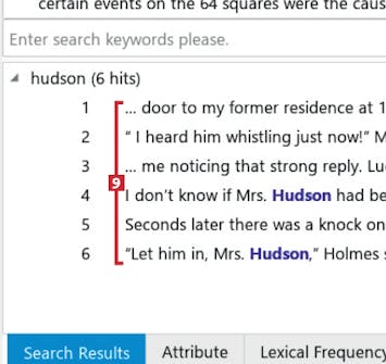 Til højre i vinduet vises det sted i dokumentet, hvor søgefrasen indgår 8. Du kan eventuelt kopiere tekst med Ctrl + C og indsætte det i et andet program.