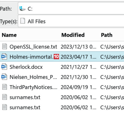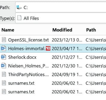 Når du søger i AnyTXT, vises dokumenterne i en liste. Samtidig får du en smart forhåndsvisning af teksten.