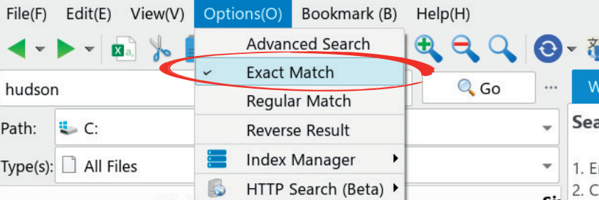 Hvis du får vist for mange søgeresultater, kan du sætte AnyTXT til kun at acceptere resultater, der ordret svarer til din søgefrase.