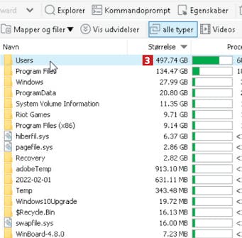 Forbruget på mit C-drev viser, at næsten al lagerpladsen er brugt. Men hvad er det, som fylder? Det skulle angiveligt være min brugermappe, men når jeg kigger på de underliggende mapper, er de enten tomme eller har kun et lille diskforbrug – i hvert fald så vidt jeg kan se. Hvordan giver det mening?