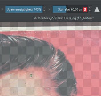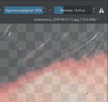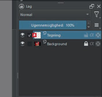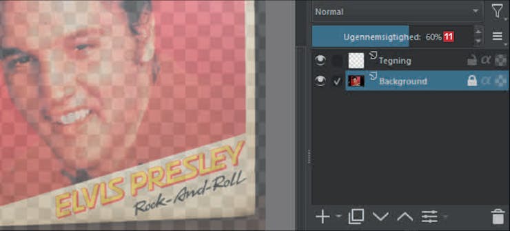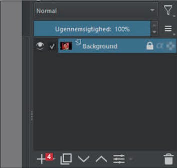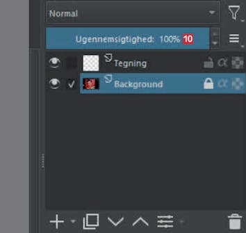 Vi vælger nu baggrundslaget og justerer gennemsigtigheden ved at justere skyderen ved Ugennemsigtighed 100% 10.