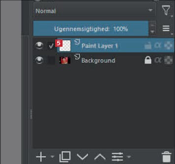 Når du har klikket på plusset, lægger laget 5 sig oven på det eksisterende billede, så du nu kan se to lag i panelet.