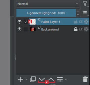 Du bestemmer lagenes rækkefølge. Det lag, som ligger øverst, er også det, som ligger øverst på din tegning. For at flytte et lag, skal du markere det 6 og bruge pilene 7.
