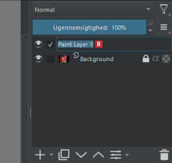 Når du skal tegne oven på et billede, skal du sørge for, at dit tegnelag ligger øverst som her 8. For at give det et navn, skal du dobbeltklikke på det.