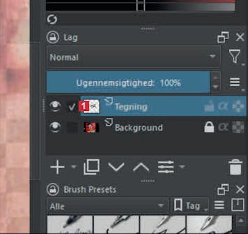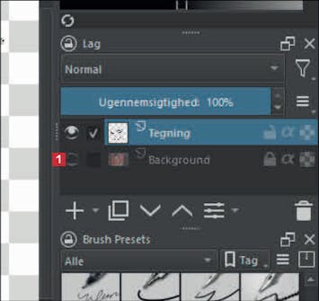 Når dit billede er tilføjet til Krita, er du klar til at begynde at arbejde i flere lag og tegne oven på dit fotografiet. Til højre finder du panelet 1, der styrer dine lag.