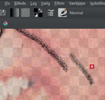 Start med at klikke på øjet 1 ved baggrundsbilledet, så dette lag gøres usynligt og ikke kan ses på det færdige billede.
