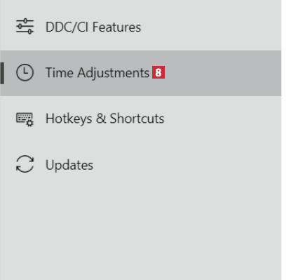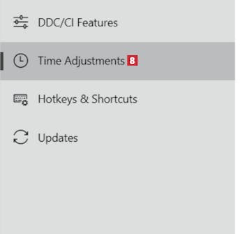 Programmets indstillinger åbner. Vi vil nu først angive et tidspunkt, hvor lysstyrken skal dæmpes. Klik på Time Adjustments 8.