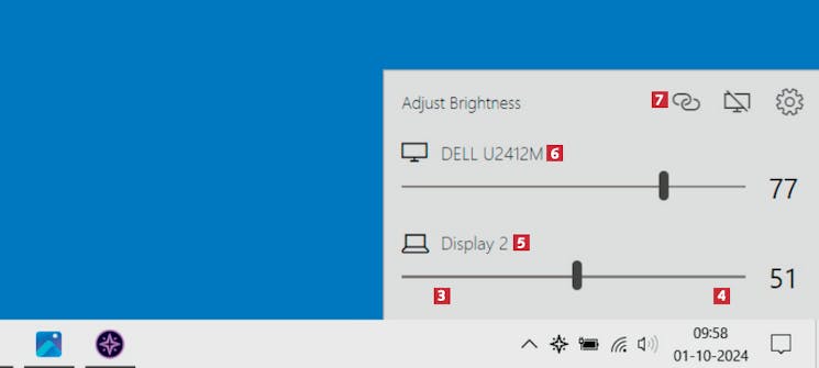 Du kan til hver en tid ændre lysstyrken via programmets ikon på proceslinjen.