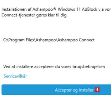 Hent programmet på hjemmesiden og start installationen. Først begynder installationen af Ashampoos nye programportal Ashampoo App. Klik på Accepter og installer 1.