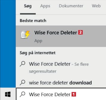 Hent programmet på vores hjemmeside, og installer det. Skriv nu Wise Force Deleter 1 i søgefeltet, og klik på linket af samme navn 2.