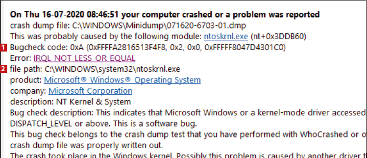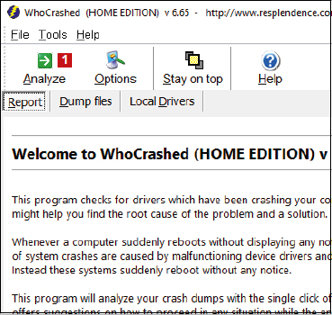 Programmet WhoCrashed går tilbage i tiden og kigger på de fejl, der er opstået på din pc. Oplysningerne er meget detaljerede og fortæller dig fx, hvis driveren til et stykke udstyr er fejlbehæftet og får Windows til at bryde