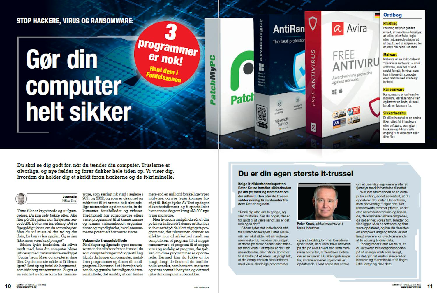 Men hvordan undgår du så, at din pc bliver inficeret? I denne artikel har vi fokuseret på de klart vigtigste programmer, der tilsammen danner en effektiv mur af sikkerhed rundt om computeren: et program til at stoppe ransomware, et program til at stoppe virus og endelig et program, der tjekker, om dine programmer er opdaterede. Dermed kan du lukke af for langt, langt de fleste af de traditionelle kanaler, som hackere, malware og virus normalt benytter, og dermed gøre din computer supersikker.