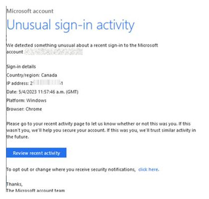 Det er nemlig mails om "usædvanlig aktivitet" på fx din Microsoft-konto.