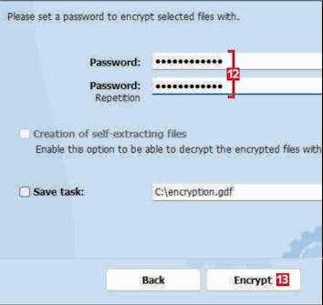 Sæt markering ved Create encrypted archive 8 og klik på mappeikonet for at vælge en placering til den færdige fil.