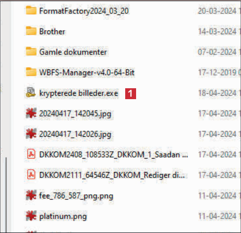 Vælg den mappe på harddisken, hvor du eller en ven har gemt den krypterede fil. Dobbeltklik på exe-filen 1.