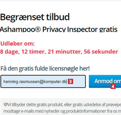 Skriv din e-mailadresse 3, og klik på Anmod om fuld versionsnøgle 4. Hvis du allerede har en konto hos Ashampoo, bliver du bedt om at logge ind med din adgangskode.