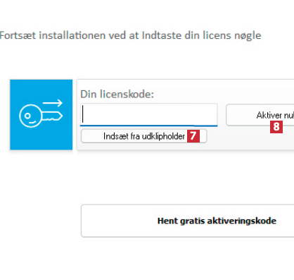 Tilbage i installationsvinduet skal du klikke på Indsæt fra udklipholder 7. Klik derefter på Aktiver nu 8.