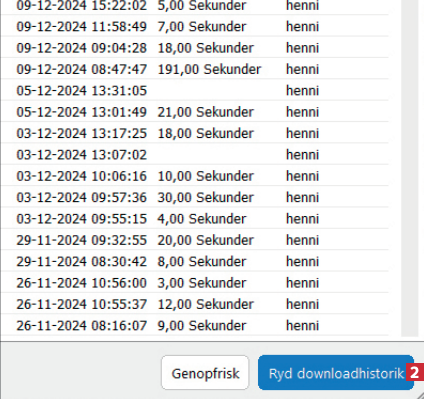 Slet oversigten over dine hentede filer