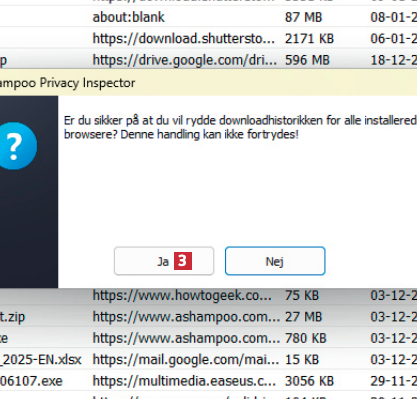 Programmet beder dig bekræfte, at du vil slette hele oversigten over de filer, du har hentet. Klik på Ja 3.