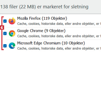 Du kan også fjerne alle de andre rester af filer, som dine browsere gemmer på pc’ens harddisk. Det gælder fx efterladte cachefiler og cookies, som gemmes af de hjemmesider, du besøger.