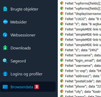 Klik derefter på Browserdata 3 for at rydde op i dine indtastede formularer. Klik på Slet data i nederste højre hjørne.