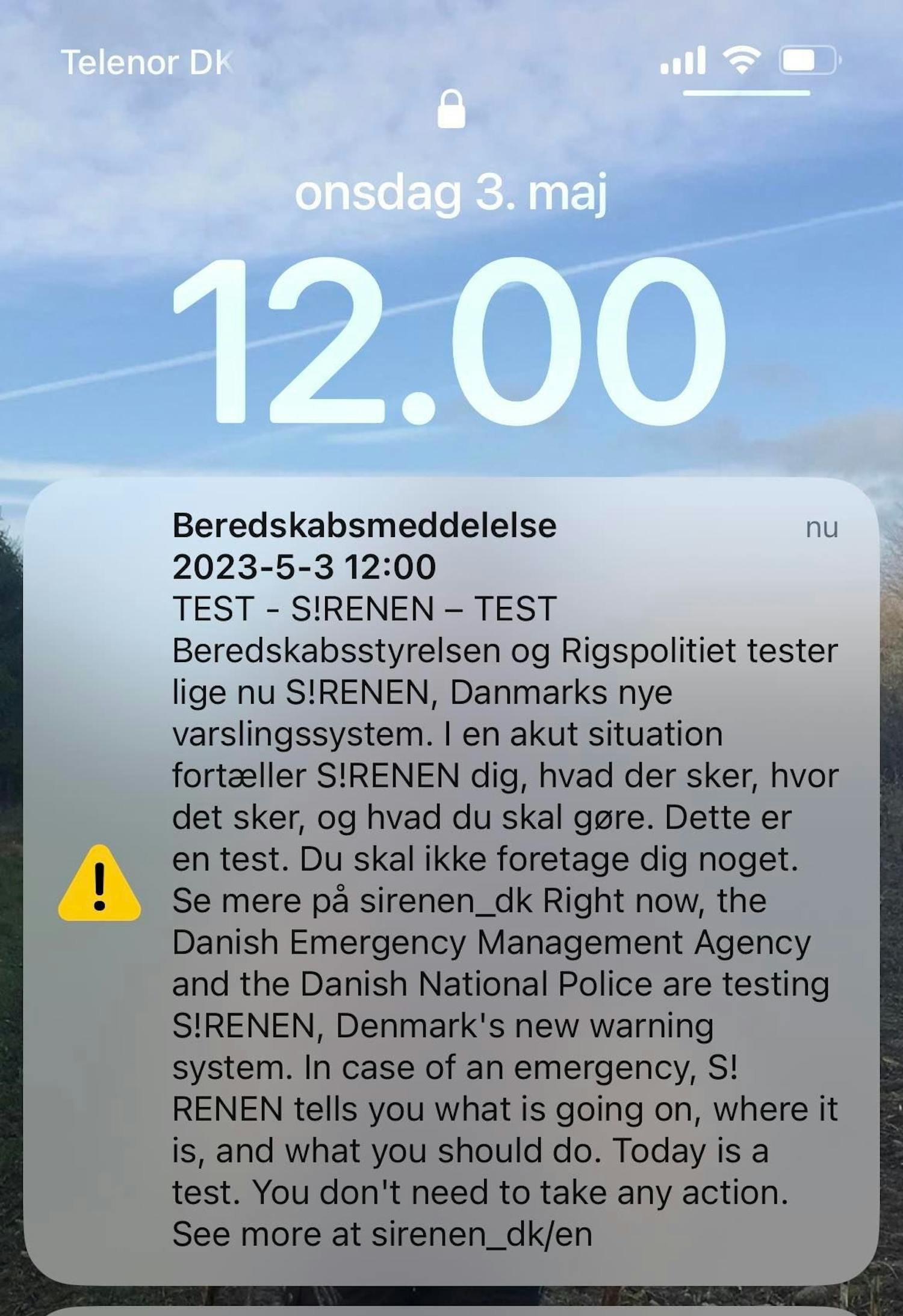 Her tester myndighederne nemlig landets varslingssystemer både på master og mobiler. Det er der for så vidt ikke noget nyt i, men det er først i de senere år, vi har haft tjenesten S!RENEN, som sender varsler direkte til din telefon.