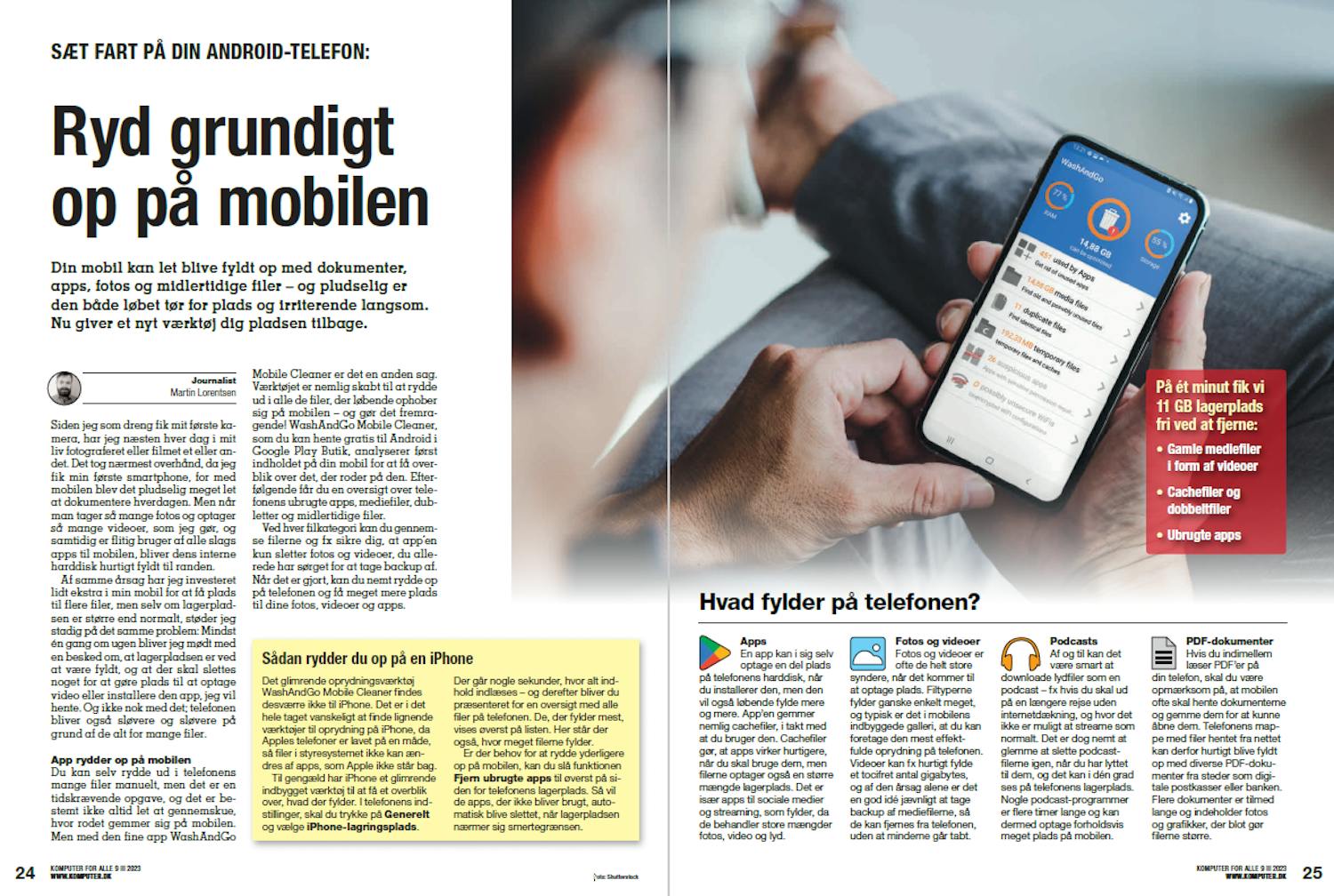 Du kan selv rydde ud i telefonens mange filer manuelt, men det er en tidskrævende opgave, og det er bestemt ikke altid let at gennemskue, hvor rodet gemmer sig på mobilen. Men med den fine app WashAndGo Mobile Cleaner er det en anden sag. Værktøjet er nemlig skabt til at rydde ud i alle de filer, der løbende ophober sig på mobilen – og gør det fremragende! WashAndGo Mobile Cleaner, som du kan hente gratis til Android i Google Play Butik, analyserer først indholdet på din mobil for at få overblik over det, der roder på den.